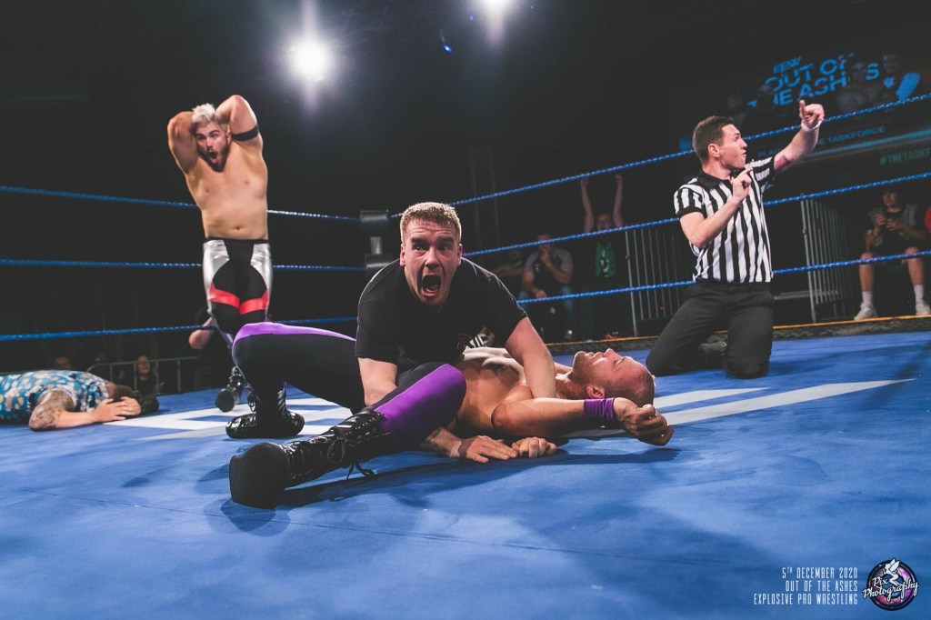 The crowning moment for Edwards came at Out Of The Ashes 2021, EPW’s big return show following their absence during the COVID-19 pandemic. It was a great night of wrestling, but the emotional high point of the show was The Taskforce, represented by Edwards and King, taking on The Plague, represented by Twitch and Aaron Hawk, for the EPW Tag Team Championships. It was a fantastically fun match that saw The Taskforce winning the belts and Edwards getting his second winning pin in a big match.